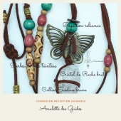 J'utilise des matières comme le bois, le cuir, les pierres, perles et breloques fantaisies, tissus...